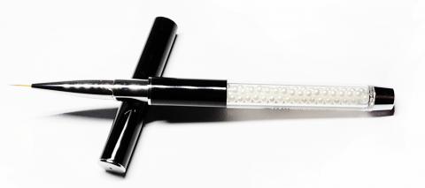 Pennello di metallo richiudibile in setole naturali e sintetiche di altissima qualità misura #000, lunghezza 8mm. Il pennello permette di realizare linee sottili per nail art di estrema precisione e pulizia.Il manico è impreziosito da perle.